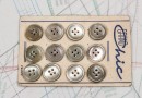 nacre tailée, long façonnage, recto et verso parfois semblable, parfois dissemblable, naturelle ou colorée dans la masse et parfois peinture de surface, 1 plaque de 12 boutonsAttaches/Trous détails